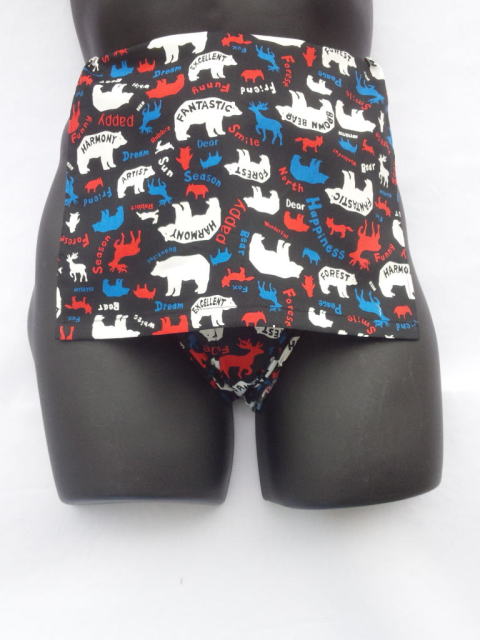 | プリント柄ふんどしの前に垂れる部分は 切り返し縫製で裏、表が逆になった商品です。 |