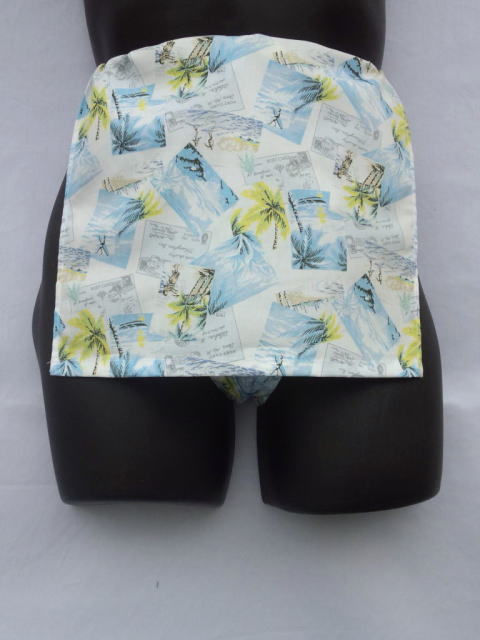 | プリント柄ふんどしの前に垂れる部分は 切り返し縫製で裏、表が逆になった商品です。 |