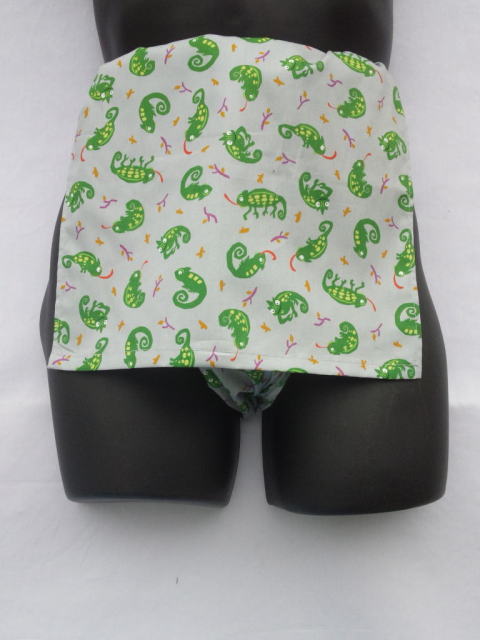 | プリント柄ふんどしの前に垂れる部分は 切り返し縫製で裏、表が逆になった商品です。 |