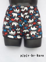プリント柄の ジョギング型トランクス 漫画やキャラクター柄にも 飽きたお子様に成長の証 としてお父さんと同じ様な トランクスはいかがでしょう 32mmのゴム使用ゴムの 取り替えは出来ません。 前閉じ 日本製 綿100% サイズ130〜160cm 1枚 700円 お買い上げ5000円以上 は送料無料 ![]() 生地の柄によりゴムの色も変えております 白・赤・黒のゴム使用 ページ中央部に参考 サイズ表を掲載